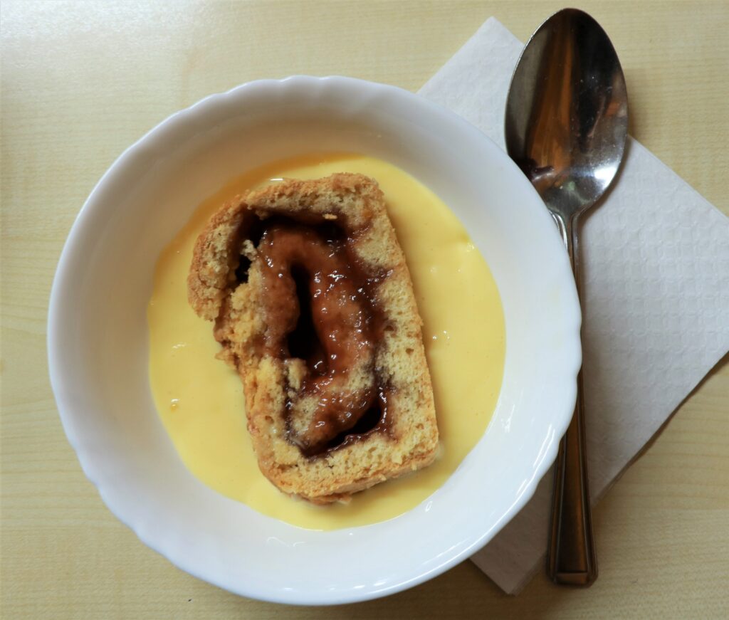 Another favourite was jam roly-poly, known colloquially as dead man’s arm or dead man’s leg. Originating in the early nineteenth century, it was made from rolled suet dough spread with jam, wrapped in cloth (often the sleeve of an old shirt, hence the nickname), steamed, and sometimes baked for a crisp crust. The first official recipe appeared in 1845 in Eliza Acton’s cookbook.