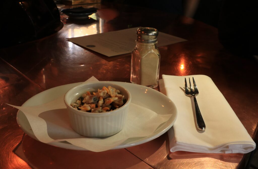 Street stalls served portions of cockles in paper cups, while cafés offered them as side dishes. Winkles were kept alive and boiled in small batches as needed. In the evenings, shellfish vendors would even visit public houses, serving clams to beer-drinking patrons. A mix of shellfish seasoned with salt and white pepper was a near-obligatory accompaniment to a pint of ale for every self-respecting East End worker.